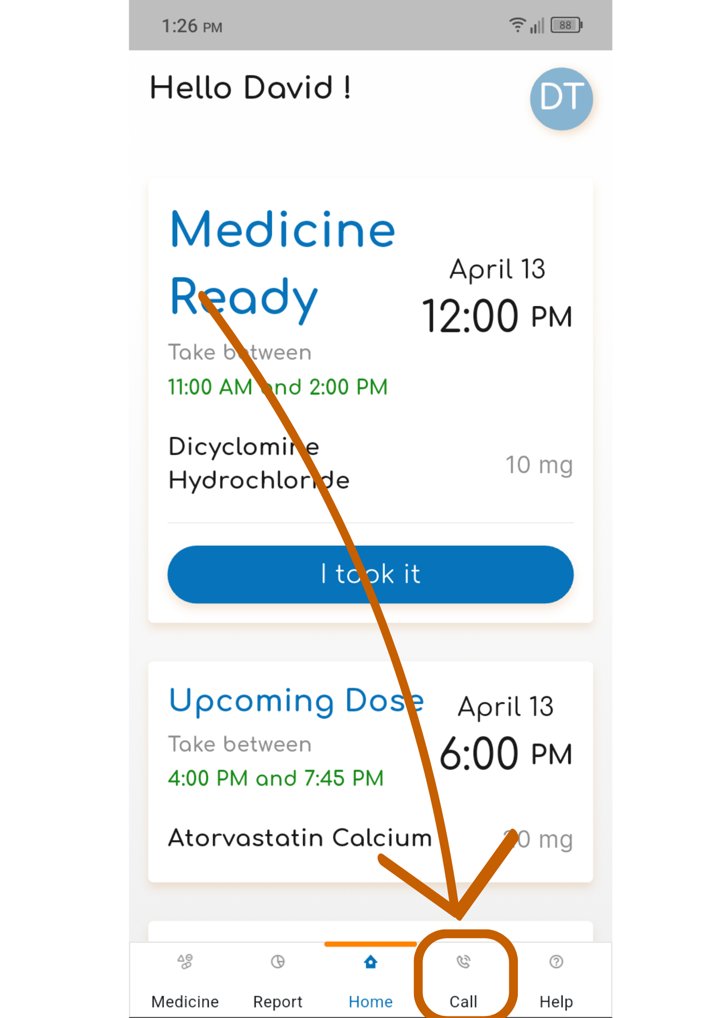 From the home page, select the “Call” button on the bottom of the screen.